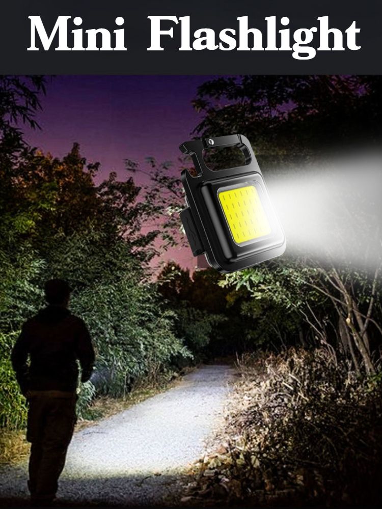 Multifunctional Portable Keychain Rechargeable Camping Lantern High Intensity COB Flashlight 300mah Aluminum Alloy