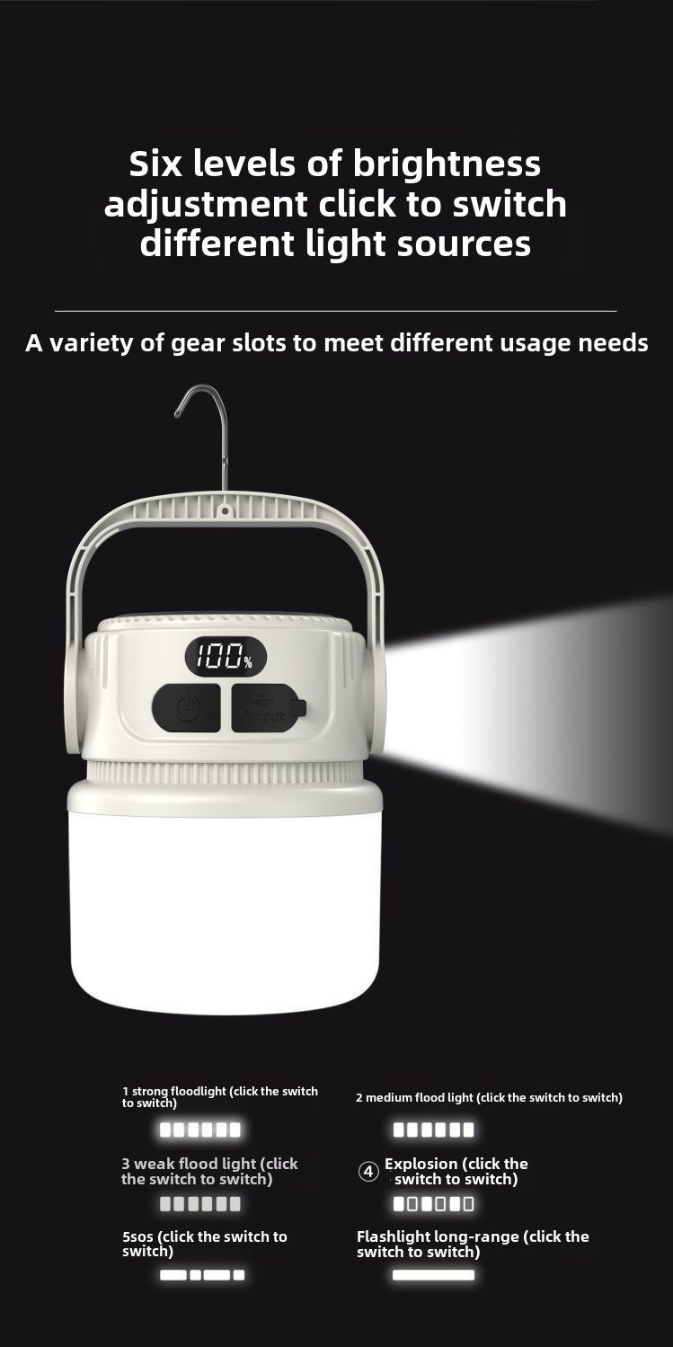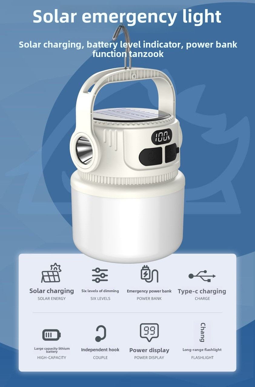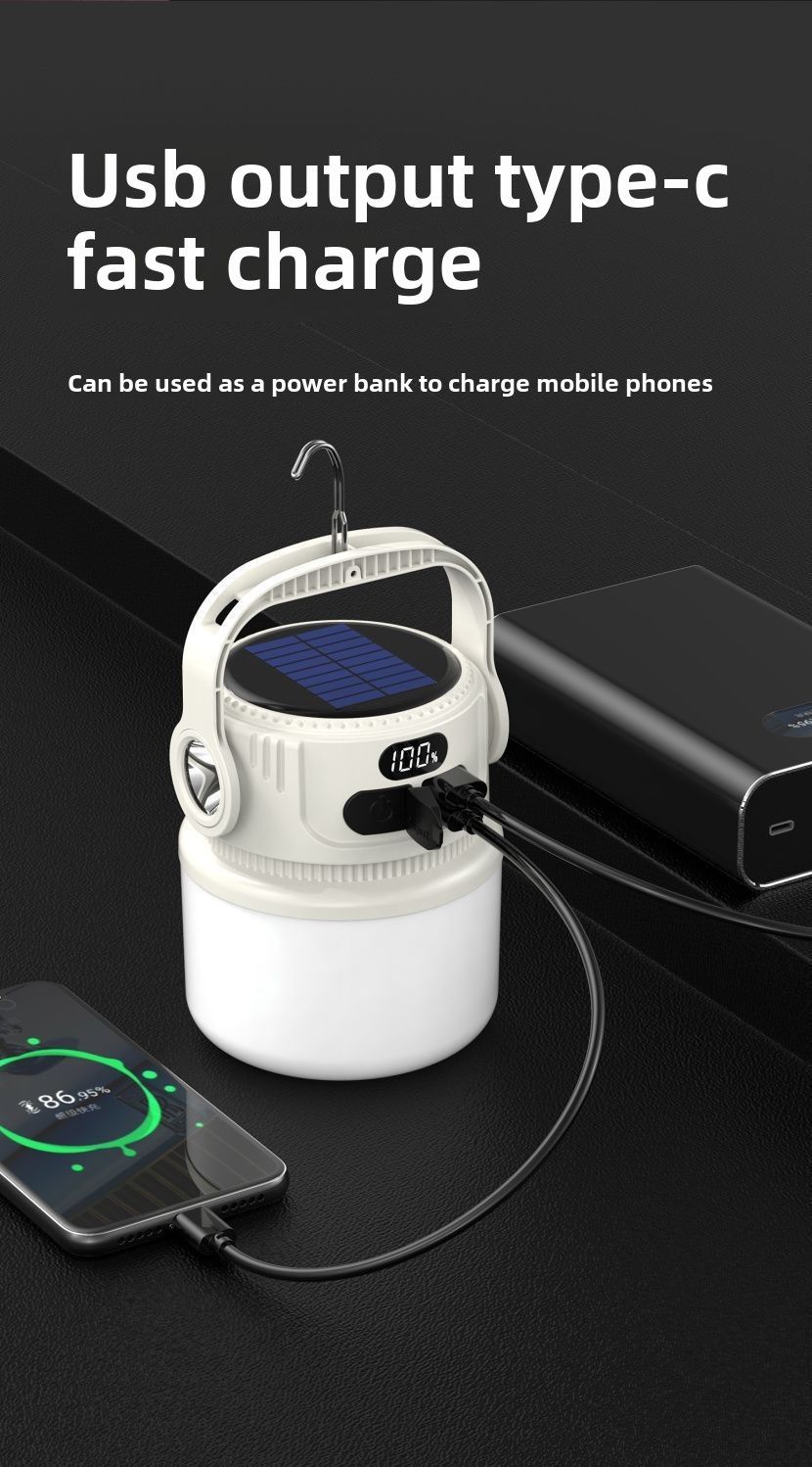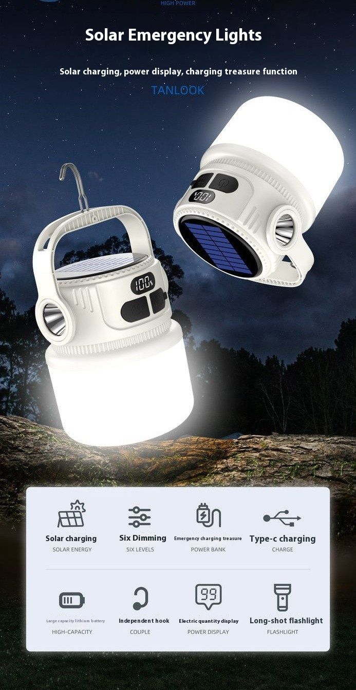 Solar Charging Light USB Power Bank Long Battery Life (2400 mAh) Can Charge Phones + Dimmable